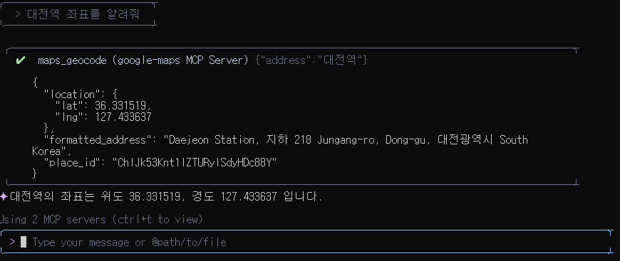 대전역 좌표를 물어보았다.