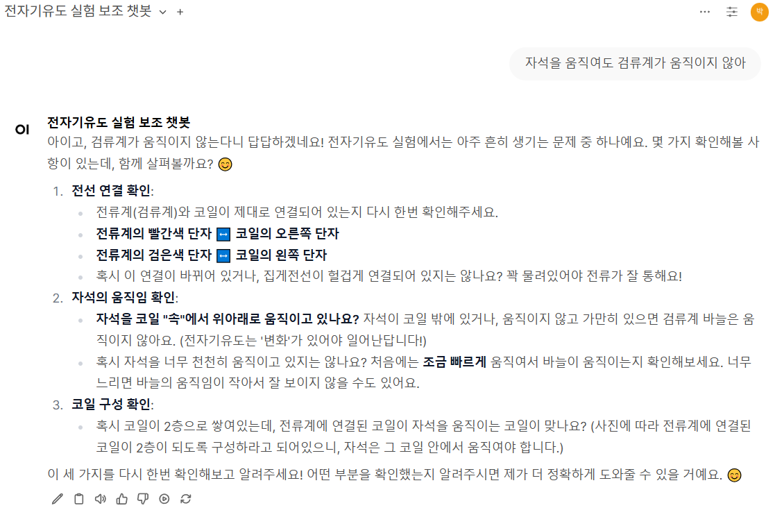 1. 모델명 : 전자기유도 실험 보조 챗봇