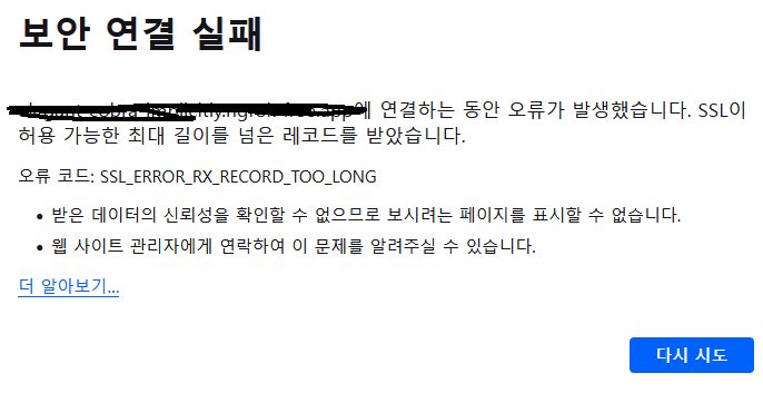 여기서 문제가 있다. 이 주소를 스마트폰 일반 LTE 데이터로 들어가면 접속이 되는데, 학교 와이파이로는 접속이 안된다. 아마 SSL 인증서에서 보안 문제로 접속이 안 될 가능성이 크다.