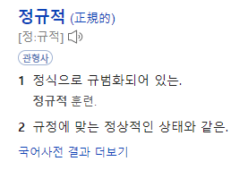 네이버 사전에서 '정규적' 이라고 검색해 보면 아래와 같다.