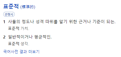 네이버 사전에서 '표준적' 이라고 검색하면 다음과 같다.